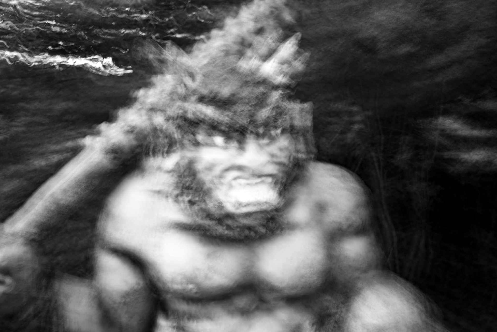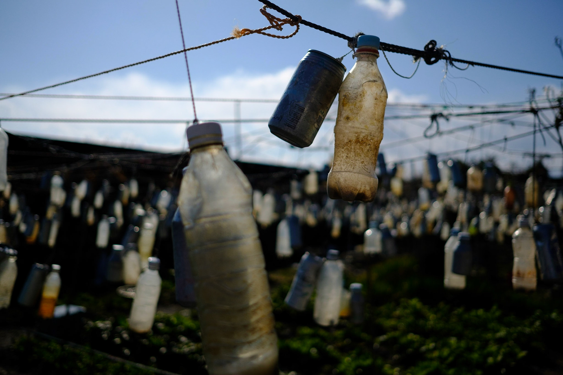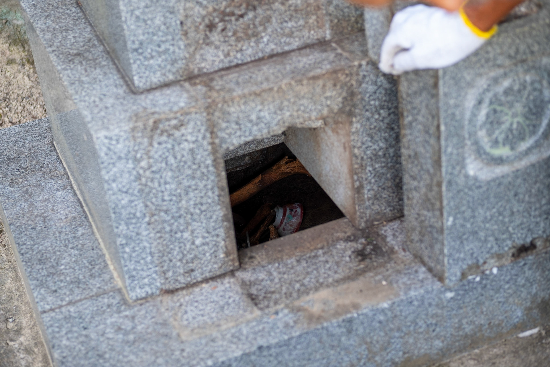 以布利的渔民正在用锤子杂碎粘在渔网上的贝类